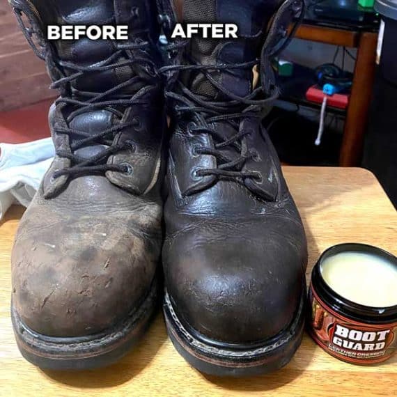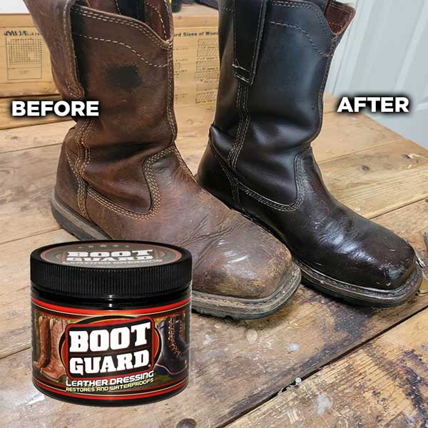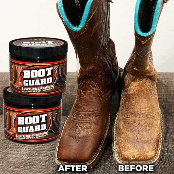 Boot Guard®restores, protects and waterproofs all leathers with pure beeswax, pure lanolin, and oils that condition and preserve leather. Boot Guard® helps prevent drying, cracking, stitching damage, de-lamination and salt stains. Boot Guard® is safe to apply by hand and is the perfect choice to protect leather from the stresses of heat, sun, cold and moisture through all seasons. Great for cowboy boots, work boots, athletic shoes, riding boots, hiking boots, hunting boots, saddles and tack, leather purses and wallets, briefcases, belts and leather accessories.